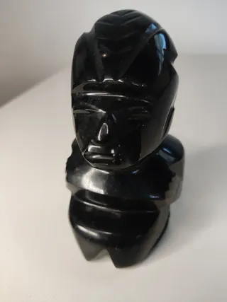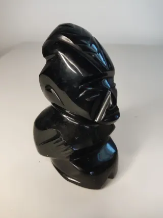 Figura decorativa de color negro, con un diseño abstracto y moderno. - Material: Piedra pulida. - Acabado brillante.