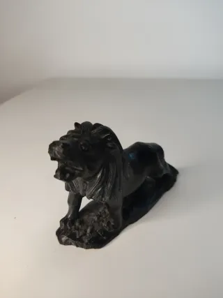 Elegante figura decorativa de un león en color negro. Su diseño detallado le da un toque de distinción a cualquier espacio. - Material: Piedra. - Color: Negro intenso. - Base texturizada.