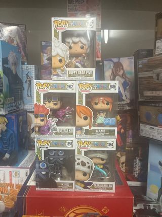 Colección de figuras Funko Pop! de One Piece. - Luffy Gear Five (1307) - Eustass Kid (1932) - Nami (2036) - King (1893) - Trafalgar Law (1894)