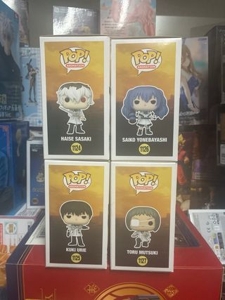 Colección de 4 figuras Funko Pop! de la serie Tokyo Ghoul. - Haise Sasaki (1124) - Saiko Yonebayashi (1126) - Kuki Urie (1125) - Toru Mutsuki (1127)