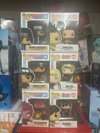 Colección de figuras Funko Pop! de la serie Naruto y Boruto. - Funko Pop! Naruto: Izumo Kamizuki (1198) - Funko Pop! Naruto: Shikadai (1039) - Funko Pop! Naruto: Might Guy (1195) - Funko Pop! Boruto: Inojin (1038) - Funko Pop! Naruto: Might Guy (Eight Inner Gates) (824) - Funko Pop! Boruto: Kawaki (1036)