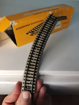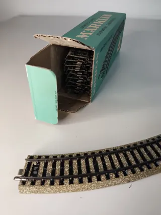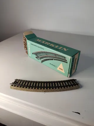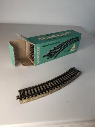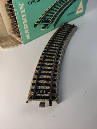 Se vende vía curva para maquetas de tren Märklin en escala H0. Ideal para ampliar o crear nuevos trazados. - Modelo: 5200 - Contiene 10 piezas.