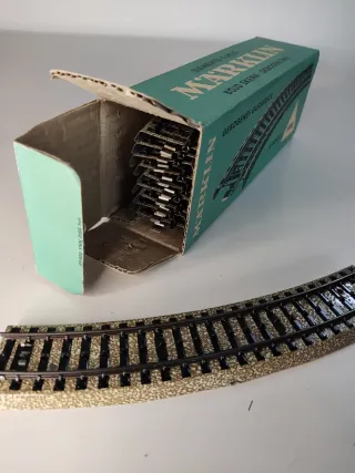 Vía curva para maquetas de tren Märklin en escala H0. El paquete incluye 10 piezas. - Marca: Märklin - Escala: H0 - Tipo: Vía curva - Cantidad: 9 piezas