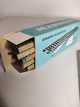 Conjunto de vías rectas para trenes Märklin en escala H0. El paquete incluye varias piezas de vía. - Vías rectas para maquetas de tren. - Escala H0. - Marca Märklin.