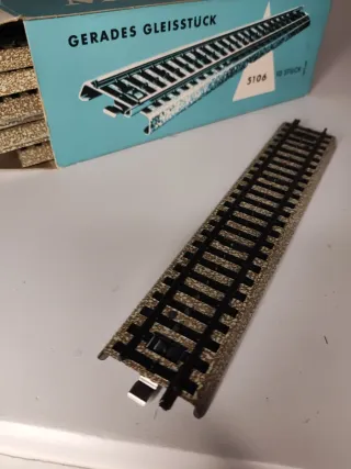Pieza de vía recta para trenes Märklin en escala H0. Ideal para ampliar o reparar tu circuito. - Modelo: 5106 - Cantidad: 10 piezas