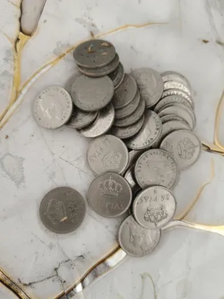 Lote de monedas españolas de diferentes épocas. - Monedas de pesetas. - Diseños variados con escudos y retratos.