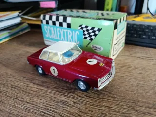Coche de slot Mercedes 250 SL de Exin. Un clásico para coleccionistas. - Color rojo con techo blanco. - Detalle de dorsal número 1. - Réplica detallada del modelo real. - En su caja, ver estado en las fotos. Se puede entregar en la Fira Vic slot Clàssic