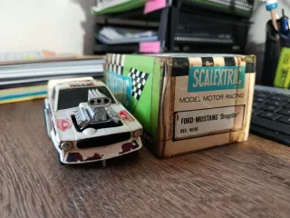 Coche de slot Ford Mustang Dragster de Exin, en color blanco.