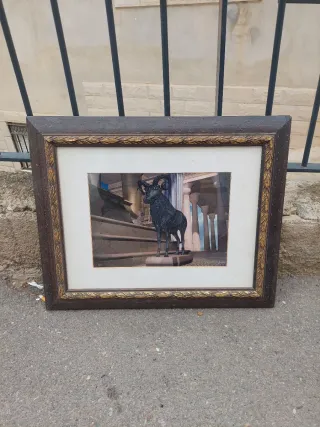 Cuadro decorativo con la imagen de un carnero. - Marco de madera con detalles. - Passepartout blanco.