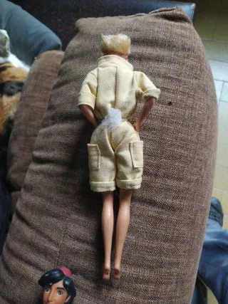 Muñeca Barbie con un conjunto de exploradora. - Traje de dos piezas en color beige. - Top con estampado brillante. - Pendientes rosas.
