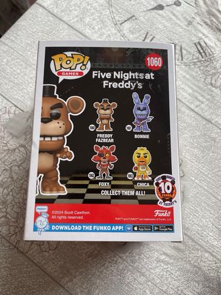 Figura Funko Pop! de Freddy Fazbear, número 1060, de la serie Five Nights at Freddy's. - Personaje: Freddy Fazbear. - Serie: Five Nights at Freddy's. - Número de coleccionista: 1060. - Edición especial 10 años. De mi colección personal