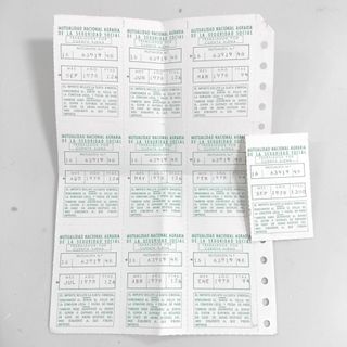 Lote de cupones de recargo para la Seguridad Social, Régimen Agrario. -1978. De enero a septiembre. Sellados -1979. octubre, noviembre y diciembre -1980. enero y febrero -1981. abril, septiembre y octubre -1982. febrero -1983. abril -1984. mayo, julio, septiembre, noviembre y diciembre -1985. año completo -1986. enero, febrero, abril, mayo, junio, julio, agosto, septiembre, octubre, noviembre y diciembre