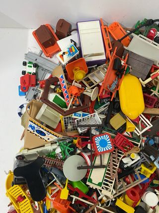 Se vende lote despiece de accesorios vintage de Playmobil. Cientos de piezas. Un total de 3,6 kilos. Todo por 20€, no se separa. Incluye varios lotes Se hacen envíos. Se agrupan pedidos. Mas Playmobil en mi perfil. Las fotos son parte de la descripción.
