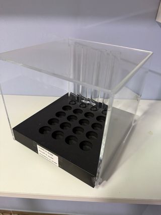 Expositor de metacrilato y base negra para plumas, bolígrafos y rollers de la serie LAMY LX - Diseño moderno y elegante. - Base con el logo de Lamy y Design. Made in Germany.