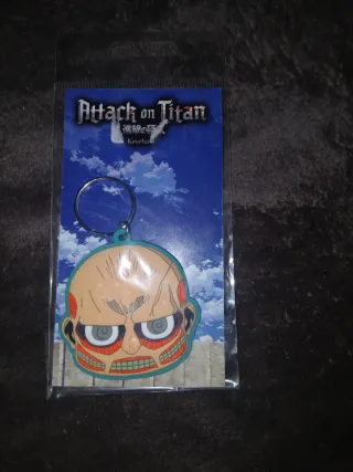 Llavero del personaje Colosal de Attack on Titan. Es un artículo nuevo, ideal para coleccionistas. - Diseño del personaje Colosal. - Material de goma. - Incluye anilla metálica.