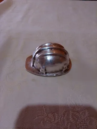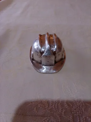 Original abridor de botellas con forma de casco con inscripción conmemorativa de la asociación de constructores y promotores de Málaga. - Diseño de casco. - Material metálico.