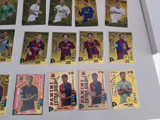 Colección de cartas de fútbol de diferentes colecciones. - Cartas de la colección Dynasty. - Cartas de la colección Momentum. - Cartas de Balón de Oro. - Incluye cartas de jugadores como Messi y Lamine Yamal.