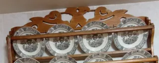 Elegante platera de madera, perfecta para exhibir tu vajilla. - Diseño rústico y funcional. - Múltiples niveles para platos. - Ideal para cocinas o comedores.