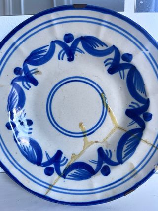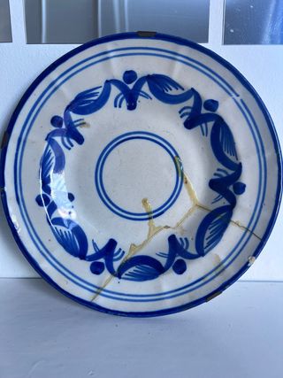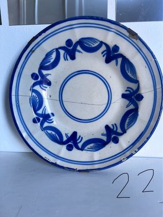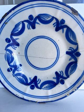 Plato antiguo decorado azul y blanco