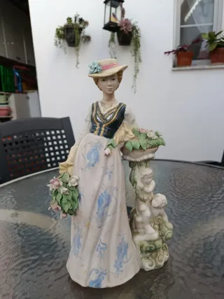 Figura de porcelana mujer con flores