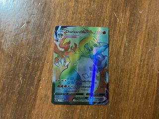 Carta Pokémon de Charizard en su forma VMAX Gigamax. - Carta foil con arte holográfico. - Ataque principal: Cuchillada Garra. - HP: 330. - Debilidad: x2. - Resistencia: 0.