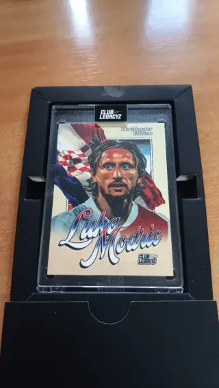 Carta coleccionable de Luka Modric, edición Blockbuster. 80/200 - Diseño con bandera de Croacia. - Incluye logo de Club Legacyz.