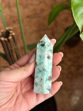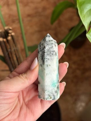 Punta de phoenix - Color verde azulado con vetas negras. - Forma hexagonal terminada en punta.
