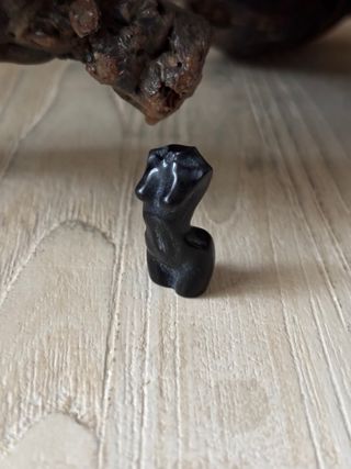 Pequeña figura decorativa con forma de cuerpo humano, tallada en obsidiana. - Material: Obsidiana. - Diseño: Figura de torso humano.