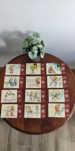 Conjunto de postales de Instantáneas de Aficionados del dibujante Pablo, con temática de la Lotería Nacional. - Incluye las 12 postales. - Dibujos humorísticos sobre la lotería. - Año 1981