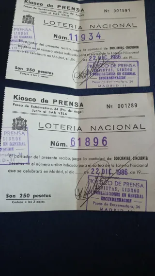 Participaciones de Lotería Vintage año 1986