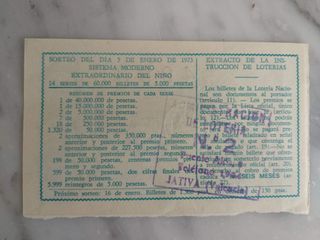 Decimo de lotería Nacional del 5 de enero de 1973. Sorteo extraordinario del Niño