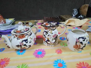 Conjunto de vajilla de porcelana con un diseño floral vibrante. Tetera Masons Mandalay - Azul Diseño popular y buscado. Piedra de hierro clásica de Masons. Patrón octogonal . Regalo perfecto para coleccionistas. Raro. - Tetera - Jarra - azucarero sin tapa