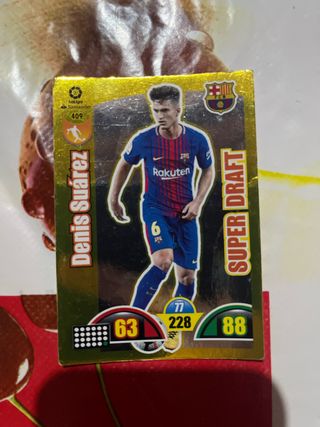 Cromo de fútbol de Denis Suárez, jugador del FC Barcelona. - Número de cromo: 409 - Liga: LaLiga Santander - Categoría: Super Draft - Puntuaciones: 63, 77, 228, 88