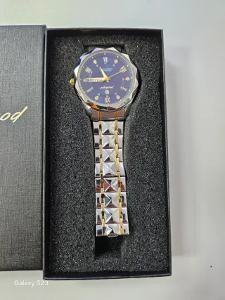 Elegante reloj de pulsera Poedagar con diseño moderno. - Esfera azul. - Correa de metal plateado y dorado. - Caja de presentación incluida. 611887729