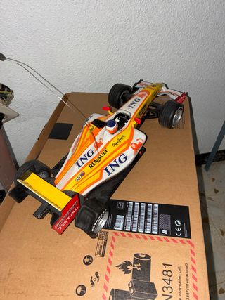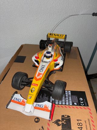 Réplica del coche de Fórmula 1 de Fernando Alonso de la temporada 2009 con el equipo Renault. Necesita reparación en las ruedas - Diseño con los colores y patrocinadores del equipo. - Réplica detallada del monoplaza. ACEPTO OFERTAS