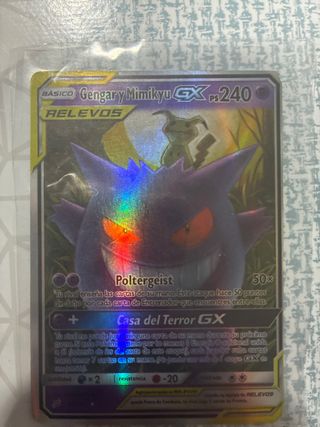 Carta Pokémon Gengar y Mimikyu GX 240 PS