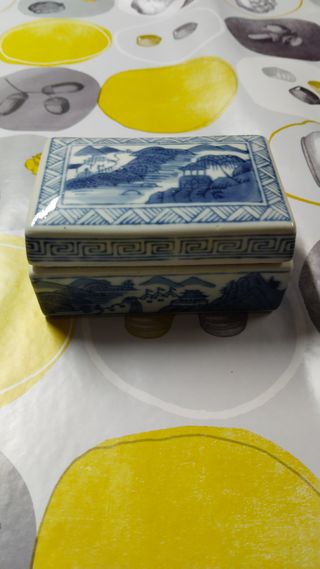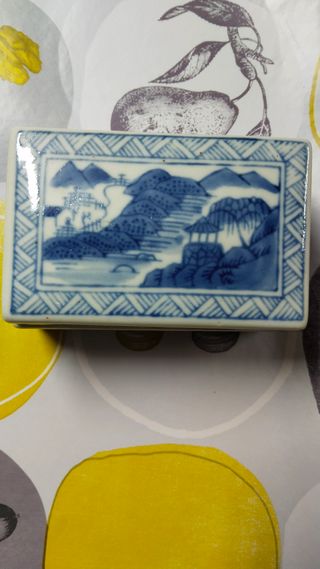 Caja porcelana china paisaje azul y blanco
