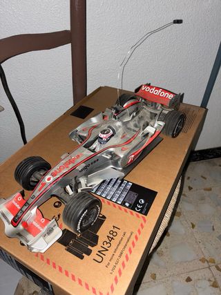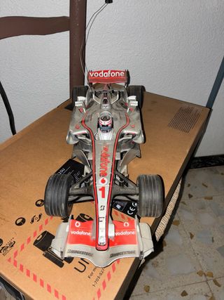 Réplica de coche de carreras a escala. - Diseño inspirado en el equipo Vodafone McLaren Mercedes. - Detalles de patrocinadores como Bridgestone y Mobil 1. - No está probado y no tiene mando tal cual se ve.