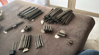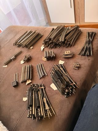 Lote de vías de tren de la marca Piko. - Incluye vías rectas y curvas. - Piezas para maquetas de tren. Total 167 piezas con cables
