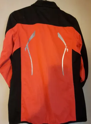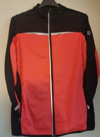Chaqueta deportiva para mujer con diseño moderno y funcional. Talla S - Color principal coral con detalles en negro. - Banda reflectante en el pecho. - Logo de la marca PRC en la manga. - Cremallera frontal.