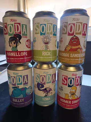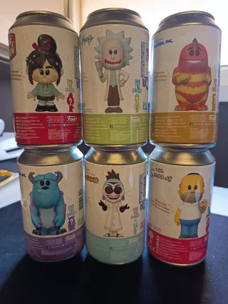 Se vende lote de 6 latas de figuras coleccionables Funko Soda. Ediciones limitadas para coleccionistas. - Vanellope ( 1-7500) - Rick ( 1-5000) - George Sanderson (1-5000) - Sulley (1-10000) - Yzma ( 1-8000) Funko 2022 Wondrous Convention limited edition - Homer Simpson ( 1-7500)