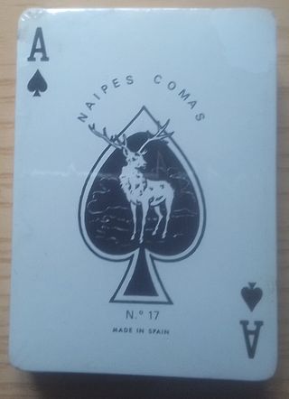 Juego de naipes con diseño de As de Picas y ciervo. - Marca: Naipes Comas - Modelo: N.º 17 - Fabricado en España