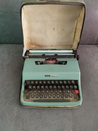 Máquina de escribir portátil Olivetti Lettera 32 de color verde menta, con su maletín original. - Diseño retro. - Teclado QWERTY. - Incluye maletín de transporte.