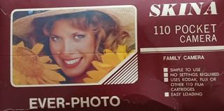Cámara de fotos SKINA 110 Pocket Family Camera. - Simple de usar. - No requiere ajustes. - Utiliza cartuchos de película 110 (Kodak, Fuji u otros). - Carga fácil.
