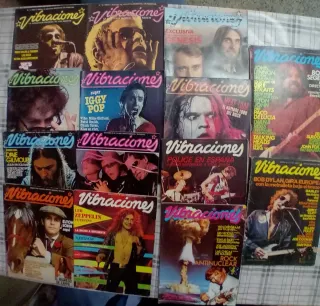 Colección de 14 revistas de música Vibraciones con reportajes sobre artistas de rock.año 1975 ,1978 a 1981 - Portadas de Genesis, Iggy Pop, Meat Loaf, Dire Straits, Police, Bob Dylan, Led Zeppelin, Elton John. - Artículos sobre música y conciertos. - Variedad de números disponibles.