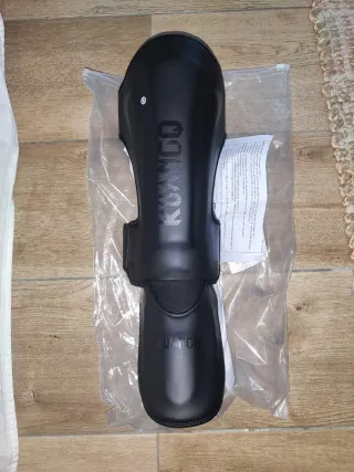 Tibiales de combate de material duro. Diseñados para proteger las espinillas. - Color negro. - Marca KUANGO.
