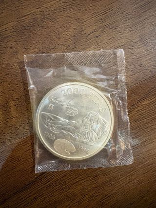Moneda de 2000 pesetas de Juan Carlos I, Rey de España de 1996. Se presenta en su embalaje original.