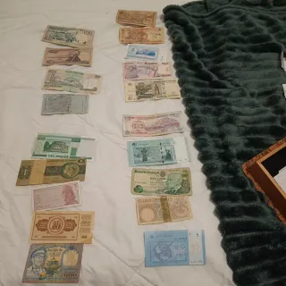 Colección de billetes de diferentes países y denominaciones. - Billetes de varios países. - Diseños y valores diversos. - Ideal para coleccionistas.