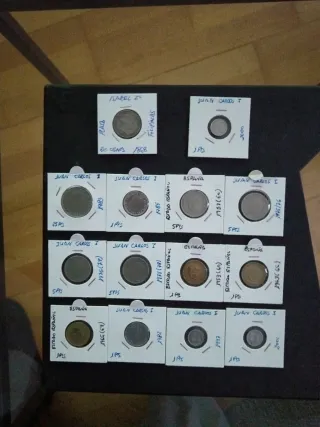 15 monedas: 3 plata, 12 Juan Carlos y Franco