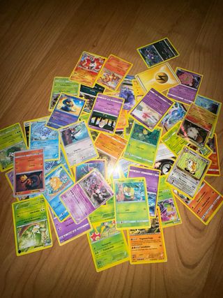 Lote de cartas Pokémon variadas, perfecto para coleccionistas y jugadores.